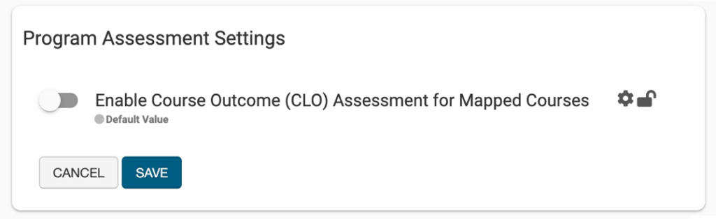 When enabled, any CLO that is not mapped to Program Learning Outcomes (PLOs) will collect data via Course Assessment. For any CLOs that are mapped to PLOs, they will collect data via Program Assessment. When disabled, the mapped course will only collect data via the Program Assessment they are associated with; even if a course has CLOs not mapped to PLOs, no CLO will be available for Course Assessment.